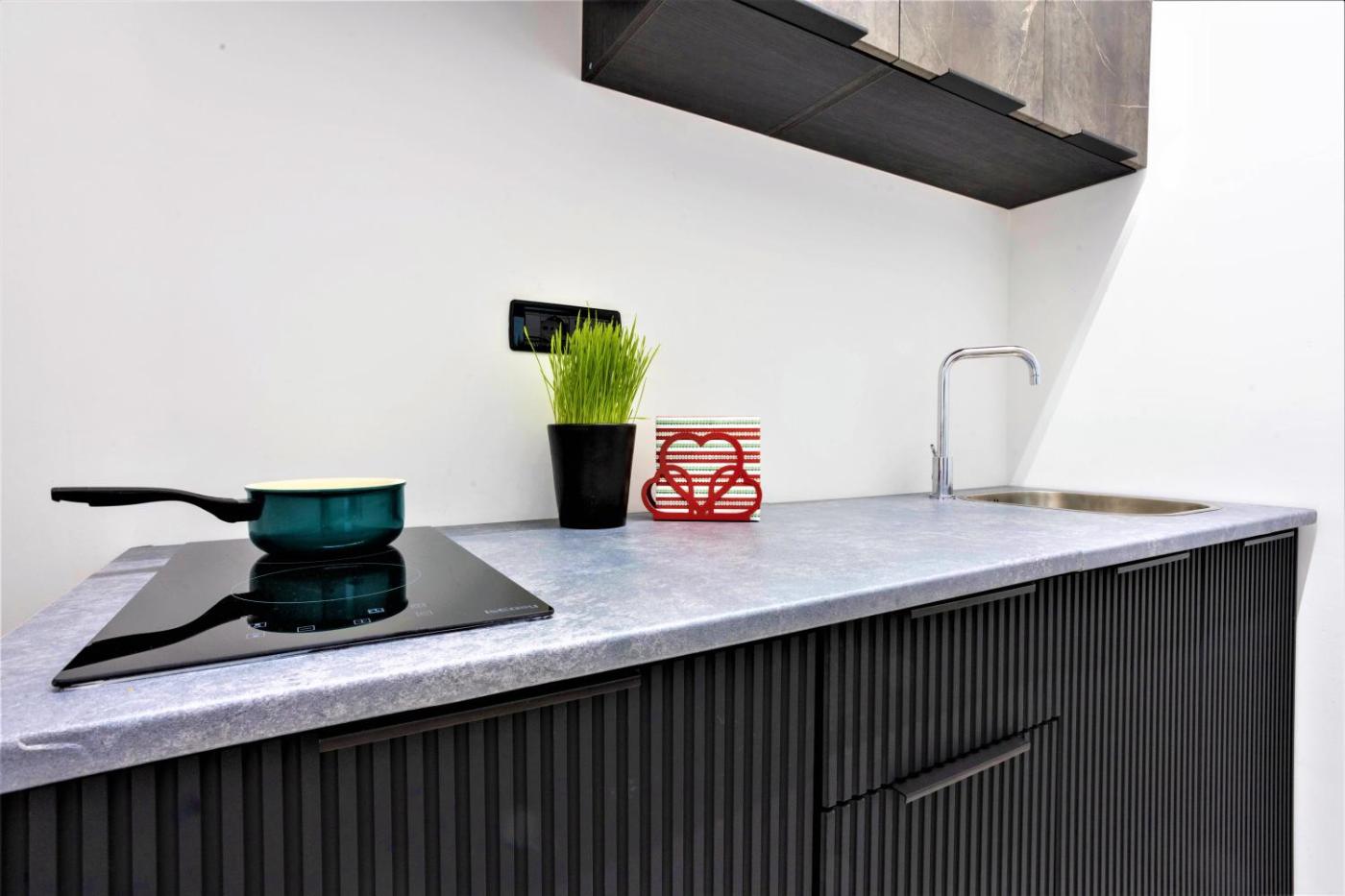 Appartamento con 1 Camera da Letto. This apartment is comprised of 1 living room, 1 separate bedroom and 1 bathroom with a shower and free toiletries. The well-fitted kitchen features a stovetop, a refrigerator, kitchenware and a microwave. The apartment has parquet floors, a seating area with a flat-screen TV, soundproof walls, a tea and coffee maker as well as ancourtyard view. The unit offers 2 beds.