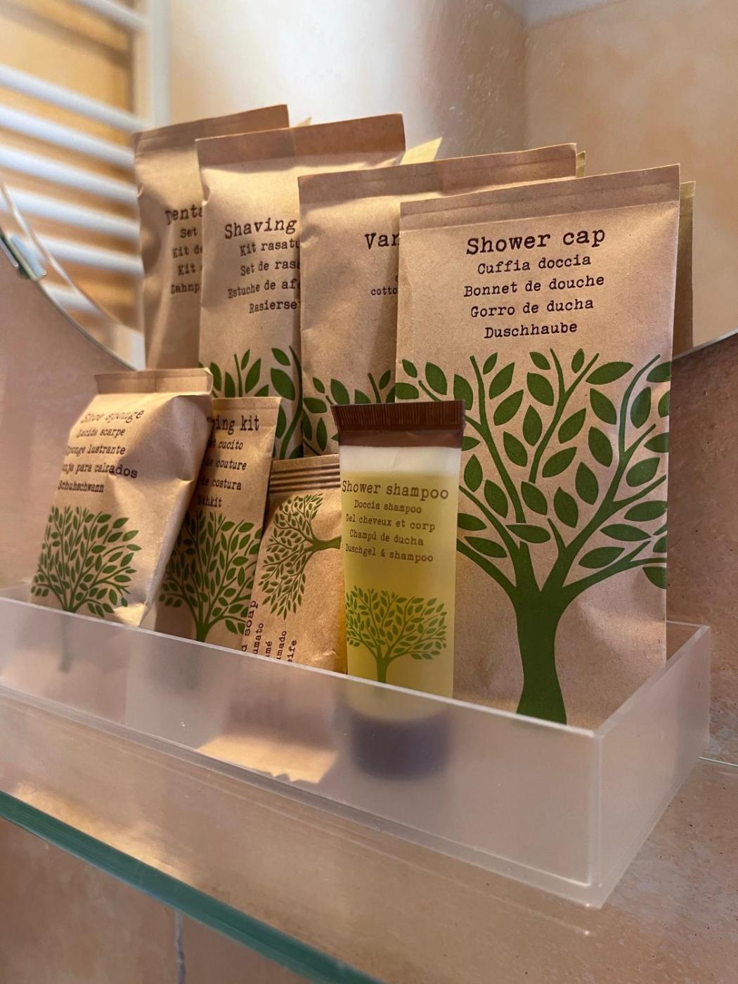 In ogni alloggio troverete anche un bagno privato con bidet, oltre adi cortesia, asciugacapelli e pantofole.