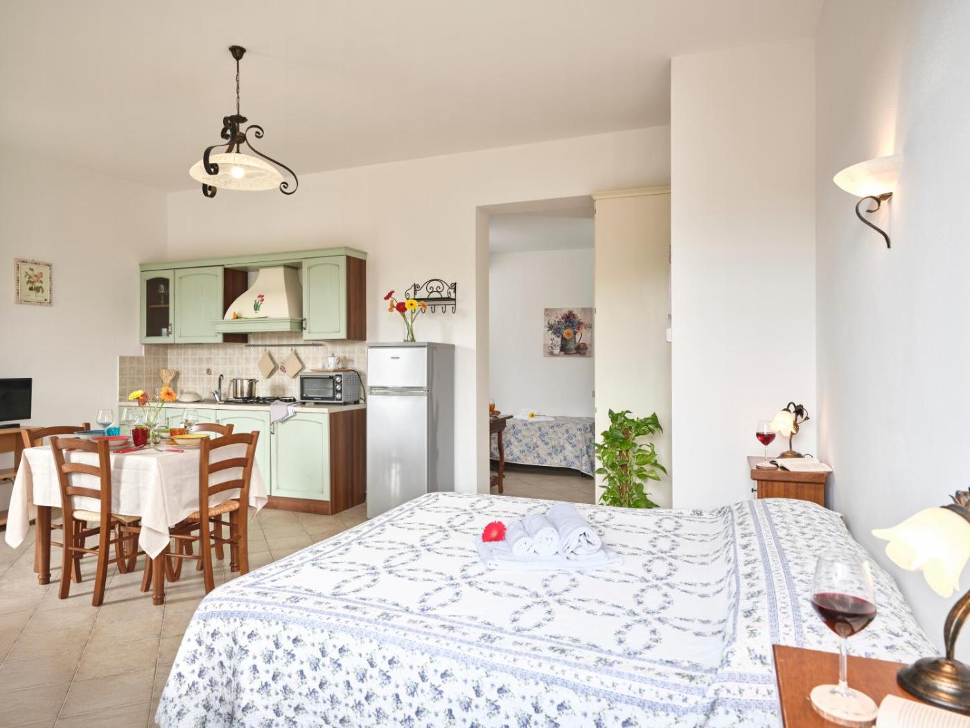 Appartamento Deluxe. The pool with a view and hot tub are the standout features of this apartment. Featuring a private entrance, this air-conditioned apartment consists of 1 living room, 1 separate bedroom and 1 bathroom with a shower and a bidet. Guests will find a stovetop, a refrigerator, kitchenware and an oven in the fully equipped kitchen. The apartment also offers a barbecue. The spacious apartment provides a tea and coffee maker, a seating area, a dining area, a flat-screen TV, as well as garden views. The unit offers 1 bed. ;