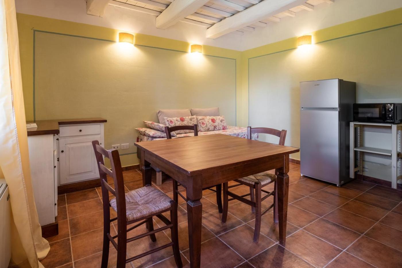 Questo agriturismo con aria condizionata comprende 1 camera da letto, un soggiorno, una cucina con utensili, lavastoviglie e macchina da caffè, e 1 bagno con doccia edi cortesia. Presso questo agriturismo troverete asciugamani e lenzuola tra i servizi offerti.