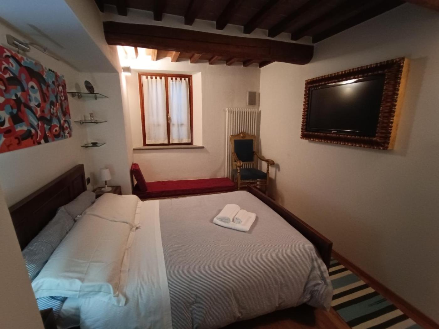 Camera Matrimoniale con Bagno Privato Esterno. Offering free toiletries, this double room includes a private bathroom with a shower, a bidet and a hairdryer. Meals can be prepared in the well-fitted kitchen, which is fitted with a stovetop, a refrigerator, a dishwasher and kitchenware. The spacious air-conditioned double room offers a flat-screen TV with cable channels, a washing machine, a coffee machine, a dining area as well as city views. The unit offers 1 bed.