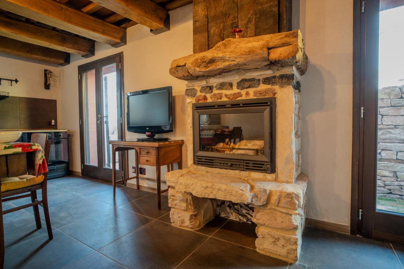 Casa con 1 Camera da Letto. The fireplace is the standout feature of this holiday home. Boasting a private entrance, this air-conditioned holiday home comes with 1 living room, 1 separate bedroom and 2 bathrooms with a shower and a bidet. Guests will find a stovetop, a refrigerator, a dishwasher and kitchenware in the well-equipped kitchen. The holiday home also includes a barbecue. The holiday home features a TV, a washing machine, a tea and coffee maker, a seating area as well as garden views. The unit has 2 beds.