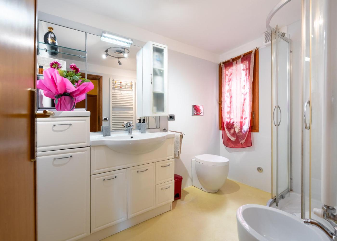 Appartamento con 2 Camere da Letto e con Vista. This spacious apartment consists of 1 living room, 2 separate bedrooms and 1 bathroom with a shower and free toiletries. In the well-equipped kitchen, guests will find a stovetop, a refrigerator, a dishwasher and kitchenware. There is a washing machine, a private entrance and a terrace and complimentary winechampagne is provided for guests. The unit offers 3 beds.