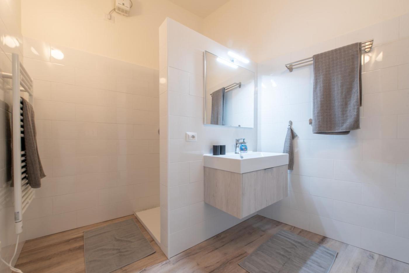 Questo appartamento con aria condizionata presenta 1 camera da letto e 1 bagno con bidet, doccia edi cortesia. La cucina prevede frigorifero, lavastoviglie e forno più macchina da caffè.