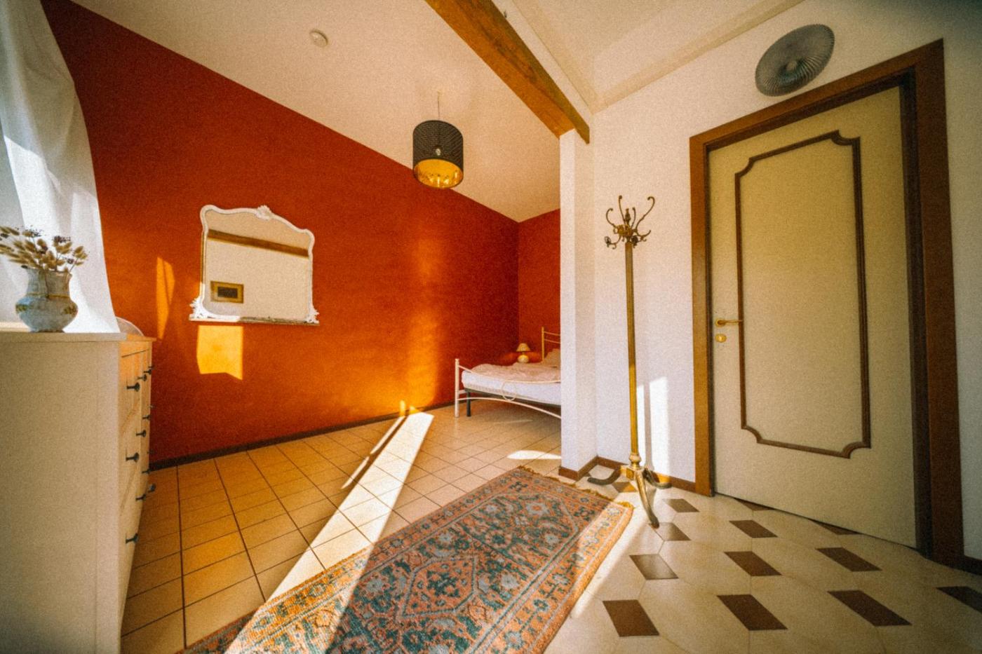 Camera Matrimoniale con Servizi Igienici in Comune. The double room features a tea and coffee maker, a dining area, a wardrobe as well as a terrace with garden views. The unit has 1 bed.
