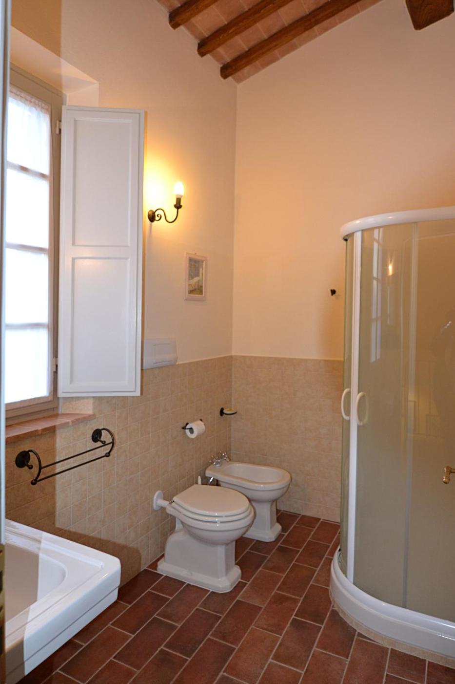 In ogni alloggio troverete anche un bagno privato con bidet, oltre adi cortesia, asciugacapelli e accappatoi.