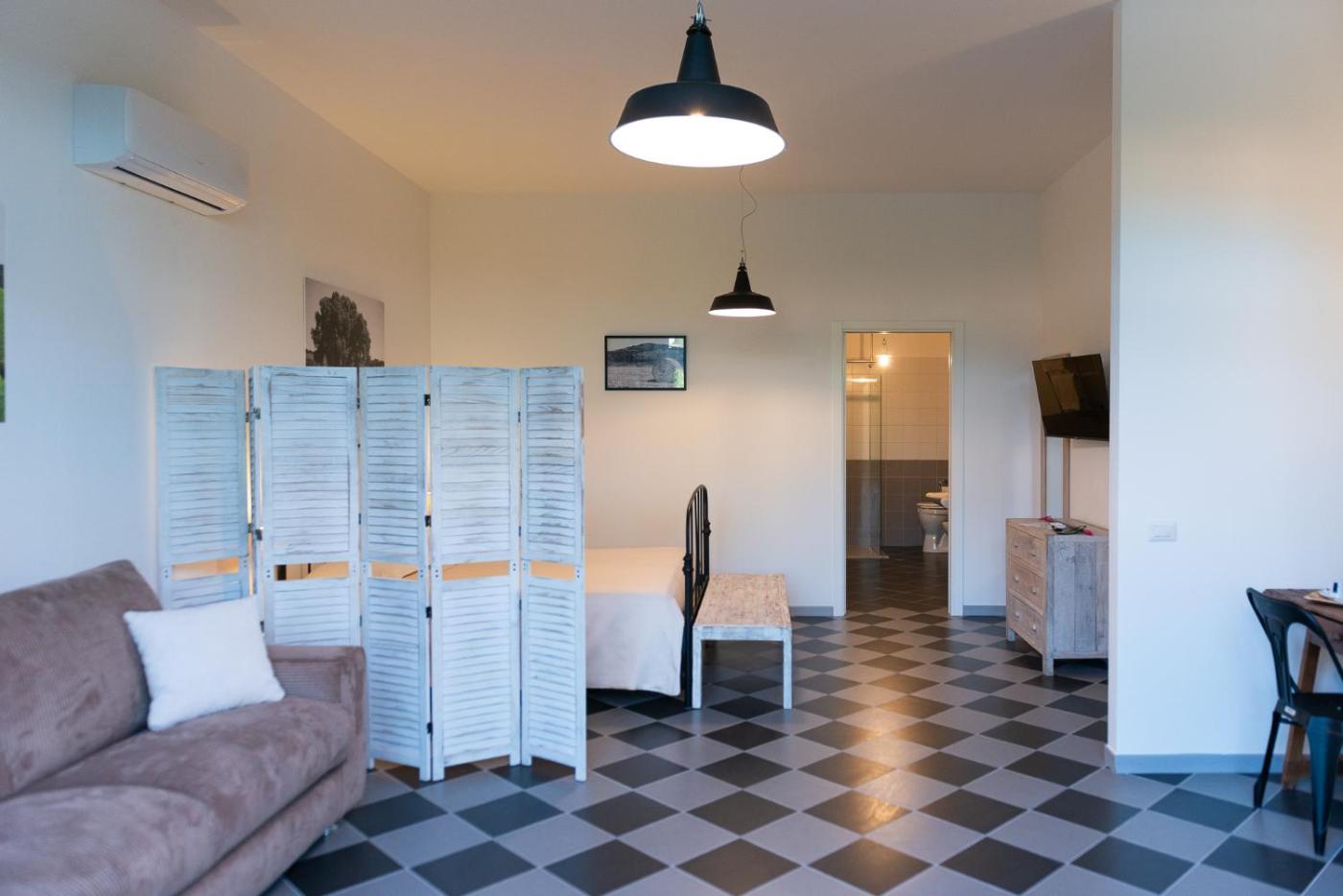 Camera Quadrupla con Bagno Privato. Questa camera quadrupla dispone di aria condizionata, ingresso indipendente, terrazza con vista sul giardino e bagno privato con doccia a filo pavimento. Lalloggio presenta 2 letti. ;