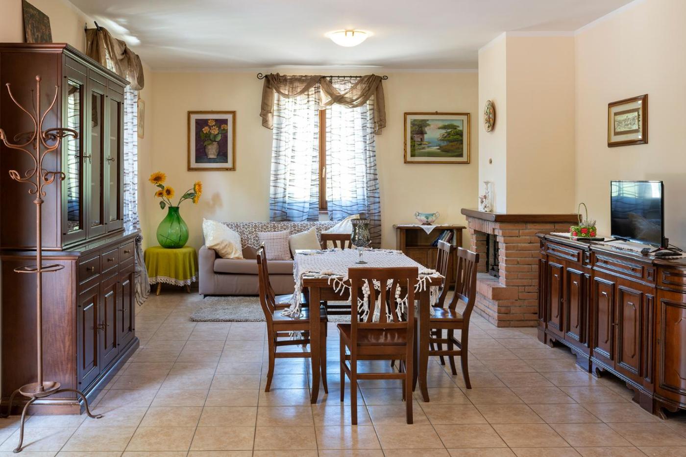 Appartamento con 3 Camere da Letto. This apartments special feature is the fireplace. This spacious apartment consists of 1 living room, 3 separate bedrooms and 1 bathroom with a shower and a bidet. Guests will find a stovetop, a refrigerator, kitchenware and an oven in the well-fitted kitchen. The apartment also offers a barbecue. Featuring a terrace with garden views, this apartment also provides a private entrance and a flat-screen TV with streaming services. The unit offers 3 beds.